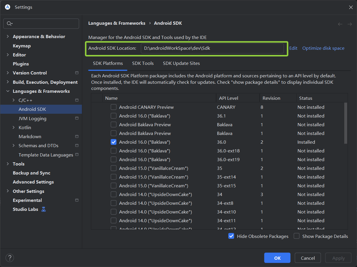 我的地址是以下路径,需要的兄弟修改为你自己的SDK路径