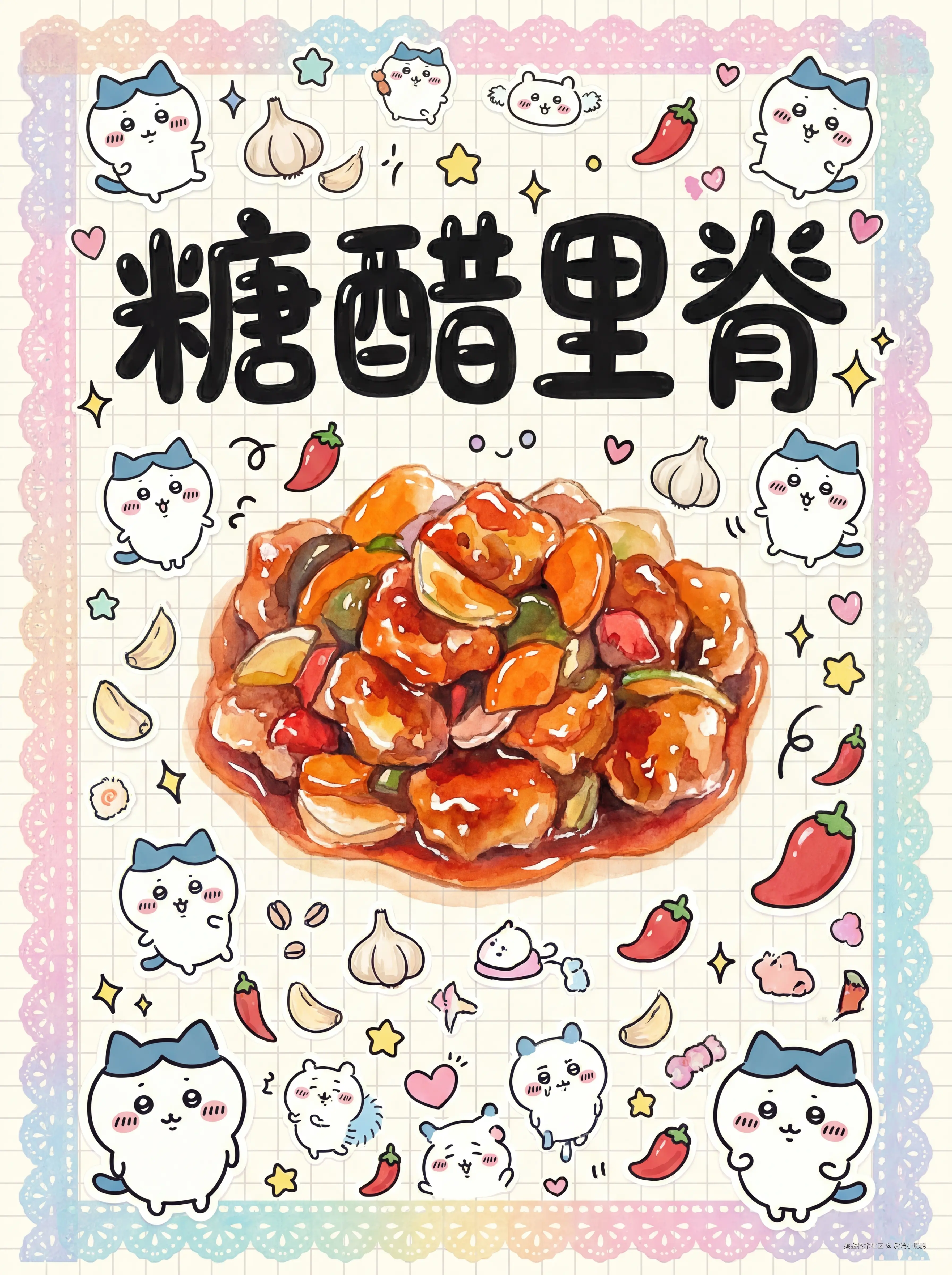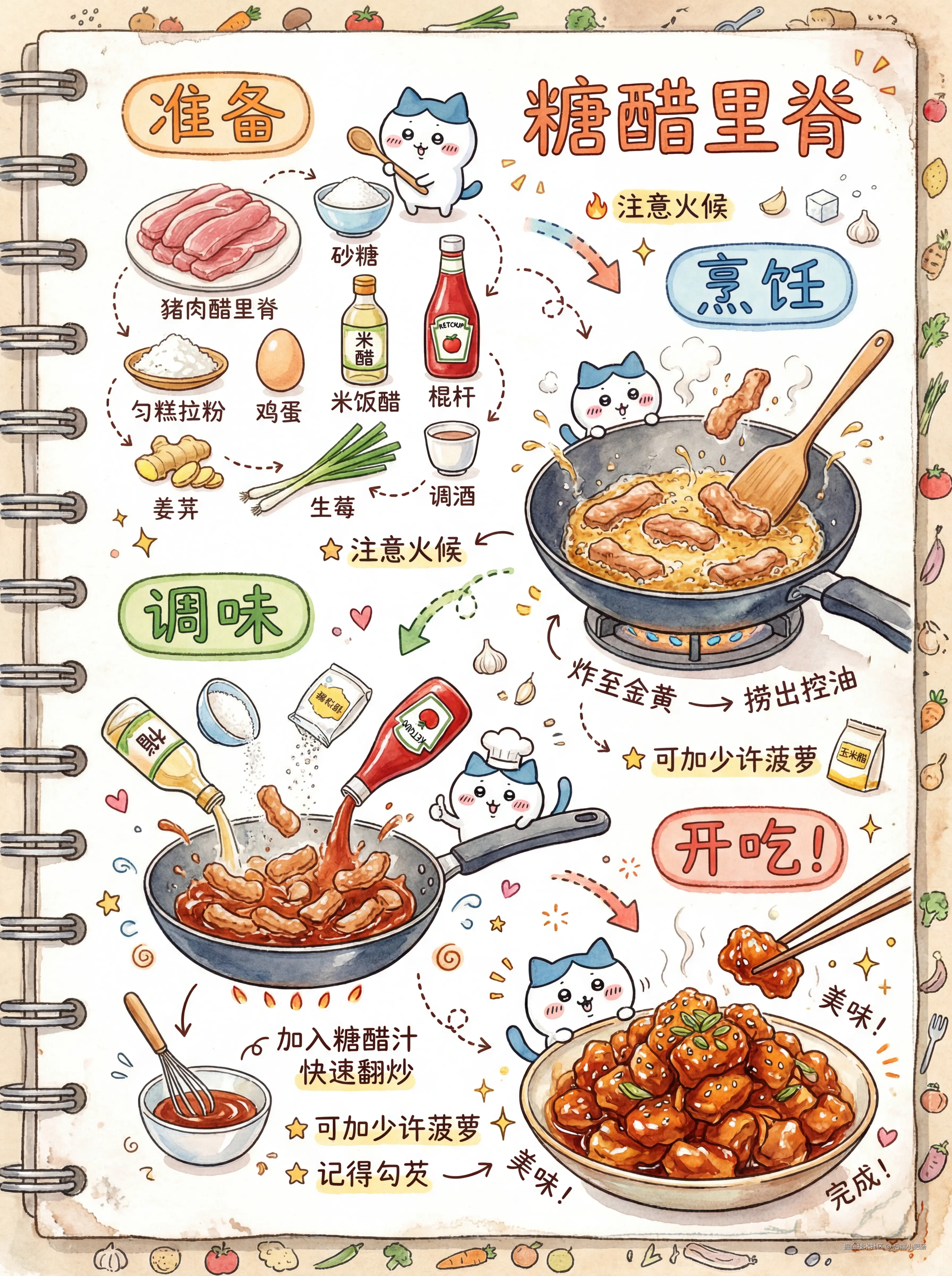 输入命令帮我生成制作糖醋里脊的小红书手账卡片