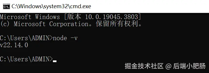 安装完成后。 按住键盘上的win+r键,打开运行窗口,输入cmd打开命令提示符,输入node -v,按一下键盘的上的回车键, 如正常现在node.js版本号即为安装成功。