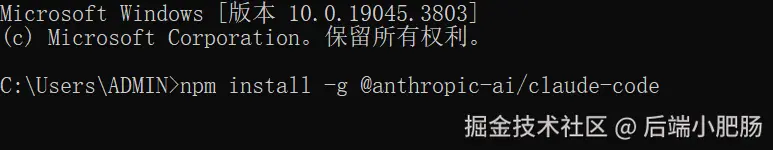 按住键盘上的win+r键,打开运行窗口,输入cmd打开命令提示符,输入npm install -g @anthropic-ai/claude-code,按一下键盘的上的回车键进行安装。