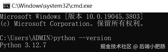安装完成后。 按住键盘上的win+r键,打开运行窗口,输入cmd打开命令提示符,输入python --version,按一下键盘的上的回车键,如正常显示python版本号即为安装成功。