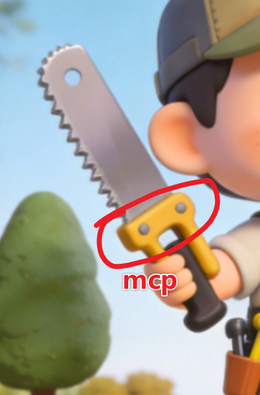 他手里握着锯柄,锯刃(tool) 是另一家公司生产的。需要买能和锯柄扣的上(mcp)的锯刃,MCP 就是锯柄和锯刃之间的标准卡扣,只要买到合适的卡扣标准,随便换哪家的锯刃,工匠上手就能用,不用改造锯柄,也不用学习新装法。