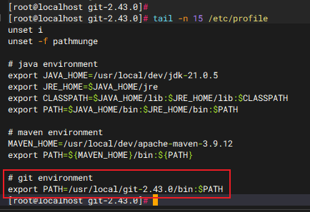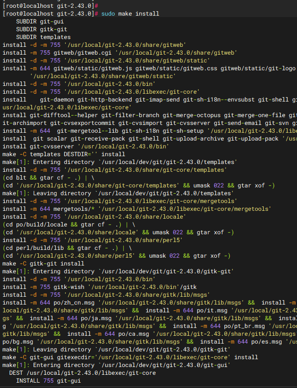 继续。敲下面这行命令安装(/usr/local/git-2.43.0 为安装目录,即想安装到哪个路径下,可更改)