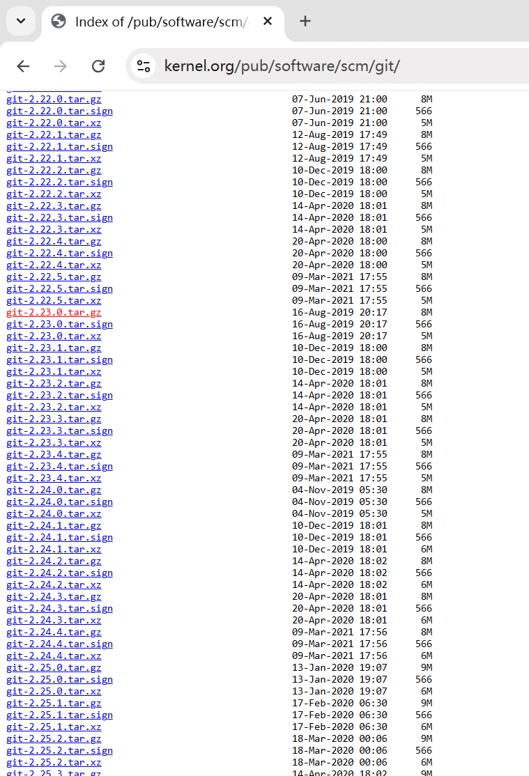 首先下载你要安装的版本(官网:https://www.kernel.org/pub/software/scm/git/),以 2.43.0 为例。