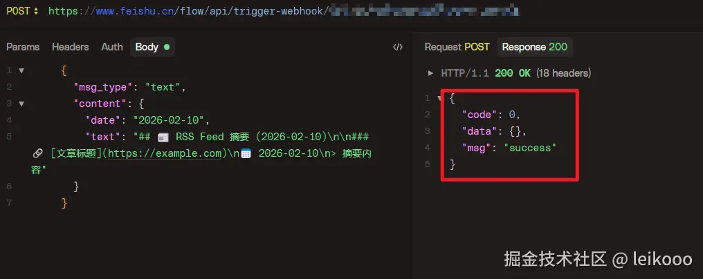 使用 Postman 等类似的工具,调用 Webhook: