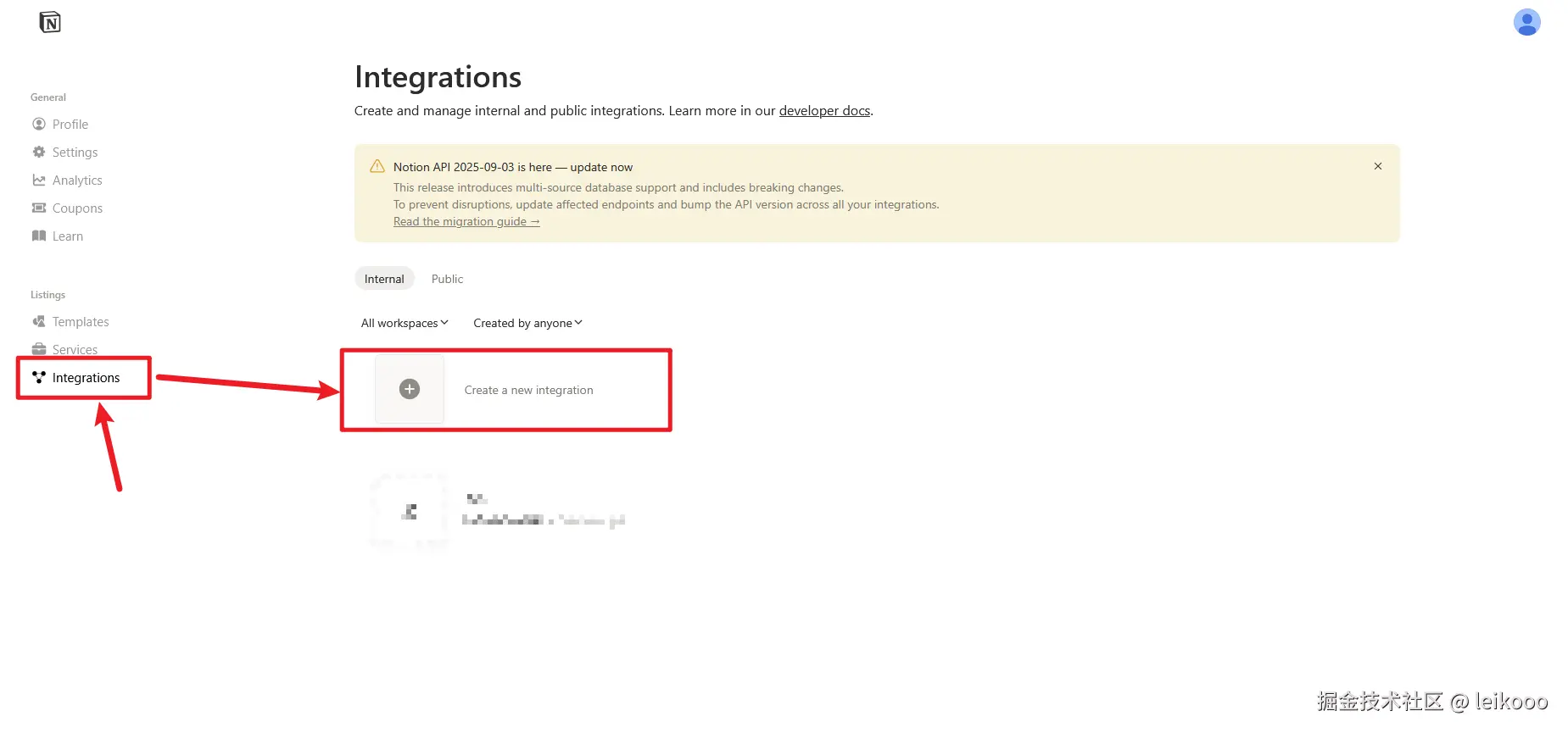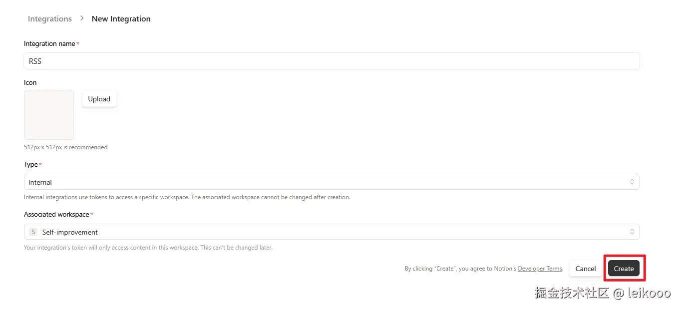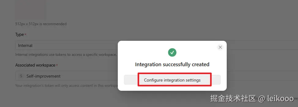 4、访问 www.notion.so/my-integrat... 创建 Integration,获取 NOTION_API_TOKEN: