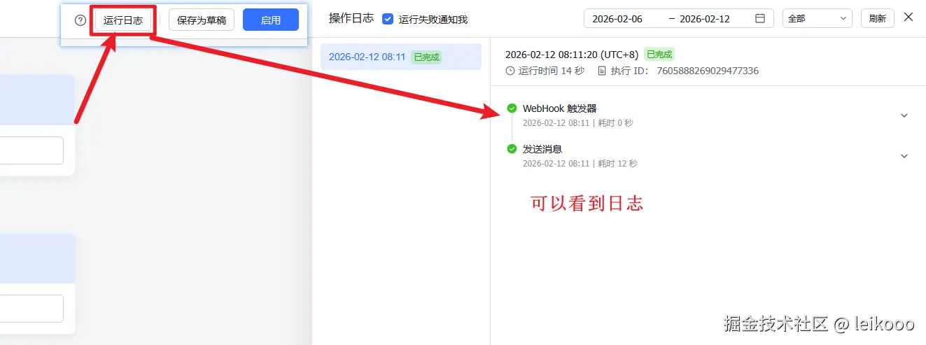 可以看到运行日志: