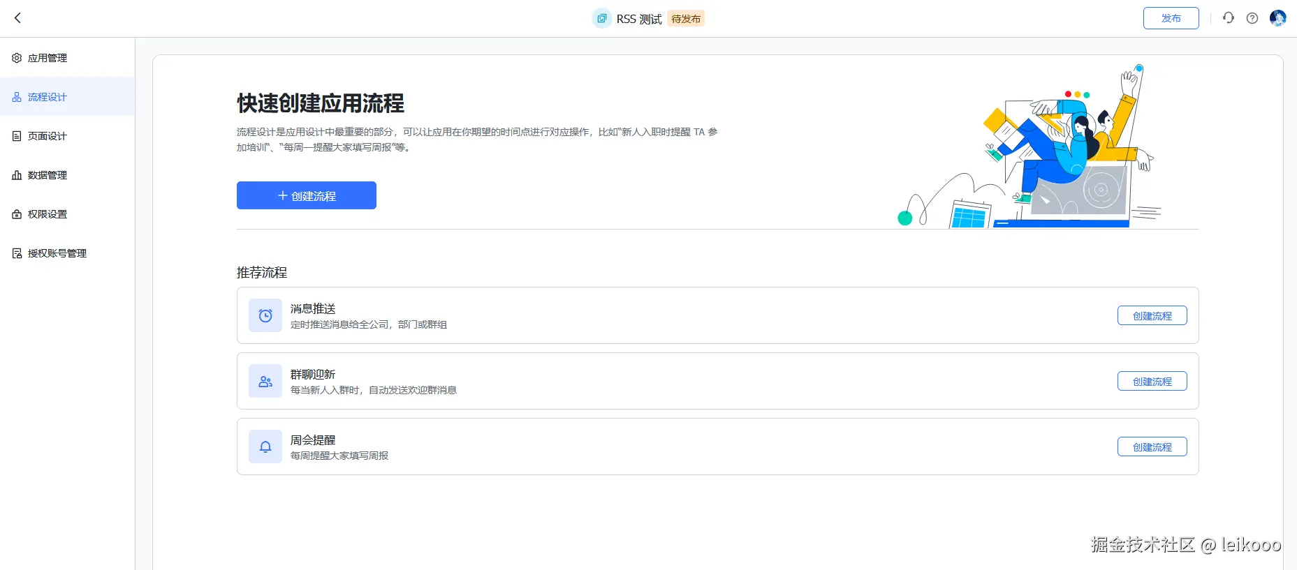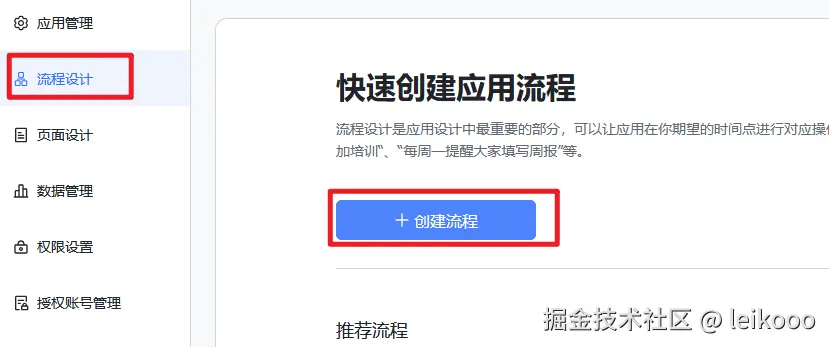 4、选择流程设计中的创建流程: