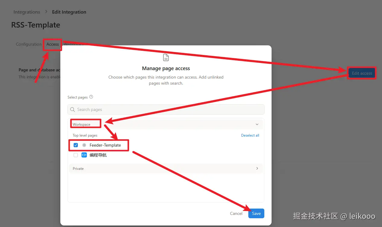 5、选择 Access 添加 Feeder-Template 这个 WorkSpace: