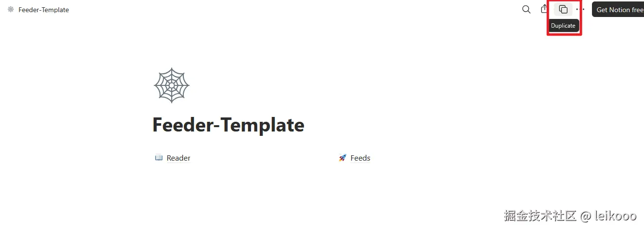 1、在浏览器登录 Notion 账号,打开这个 Template:broad-vermicelli-d06.notion.site/Feeder-Temp...