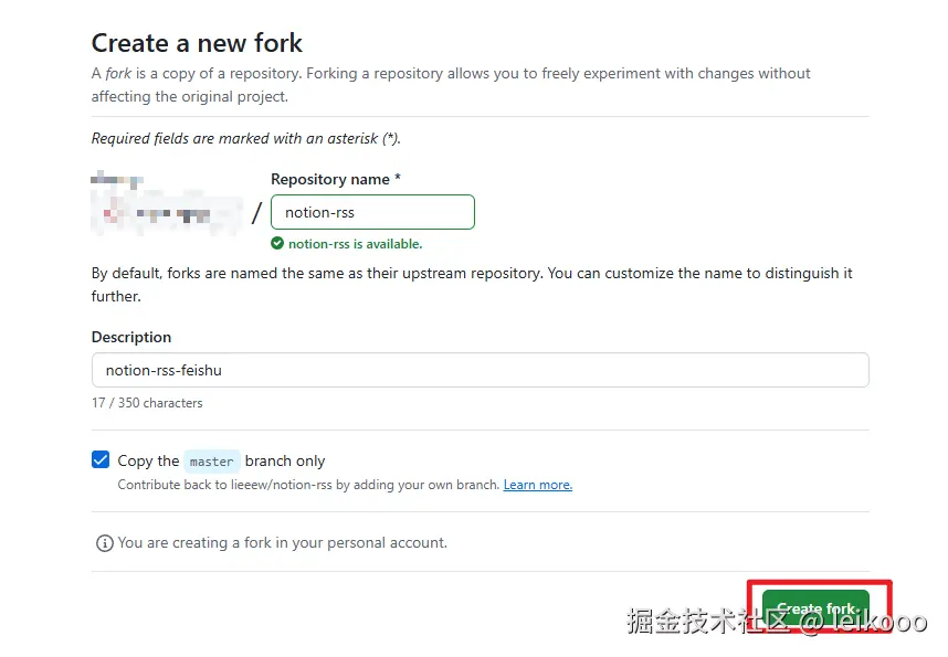 3、直接点击 Create Fork: