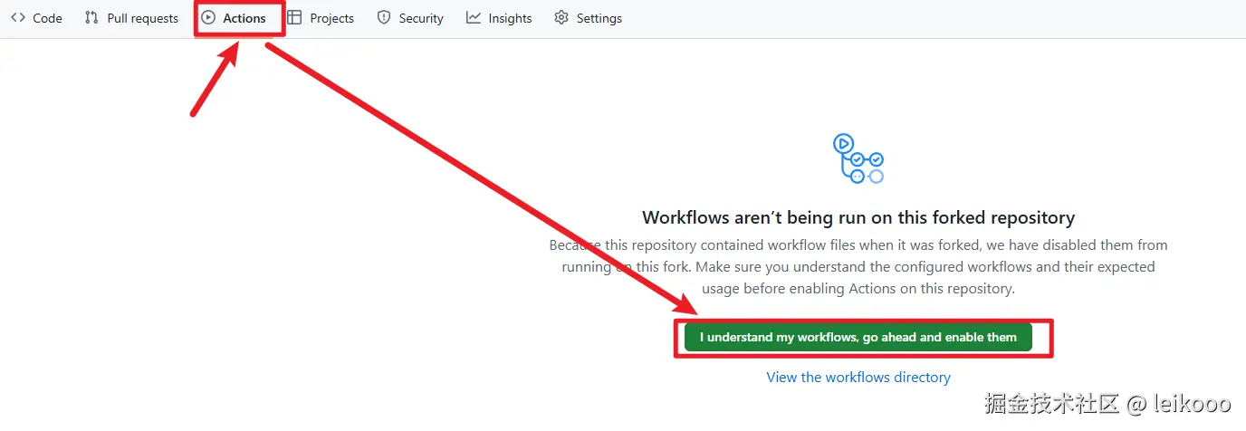 1、开启 Workflows:进入 Actions → 点击 I understand my workflows, go ahead and enable them: