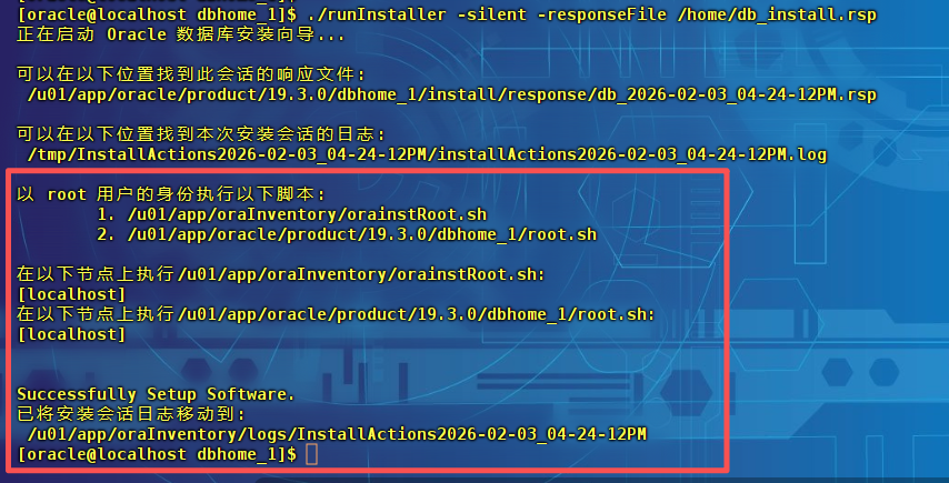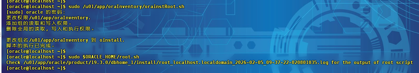 解压命令:sudo unzip LINUX.X64_193000_db_home.zip -d /u01/app/oracle/product/19.3.0/dbhome_1