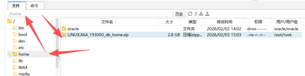 1、将下载好的数据库安装包复制到 home 目录下