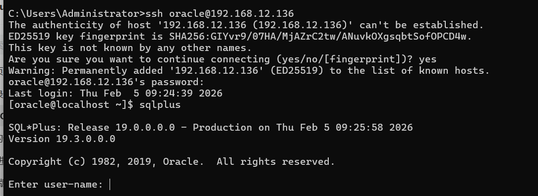 ssh oracle@ip