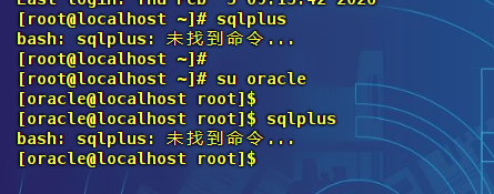 在系统开机后,我们用root账号登陆到系统桌面、root用ssh登陆,或者从root使用命令 su oracle 登陆,运行 sqlplus 命令提示未找到命令
