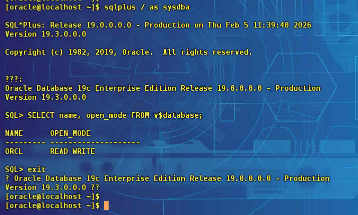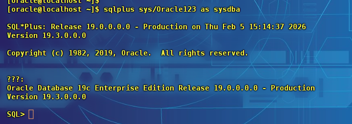 sqlplus sys/Oracle123 as sysdba
