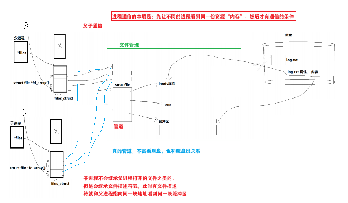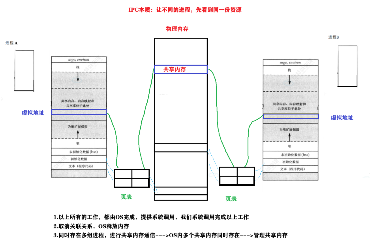 进程通信的本质是:先让不同的进程看到同一份资源"内存",然后才有通信的条件