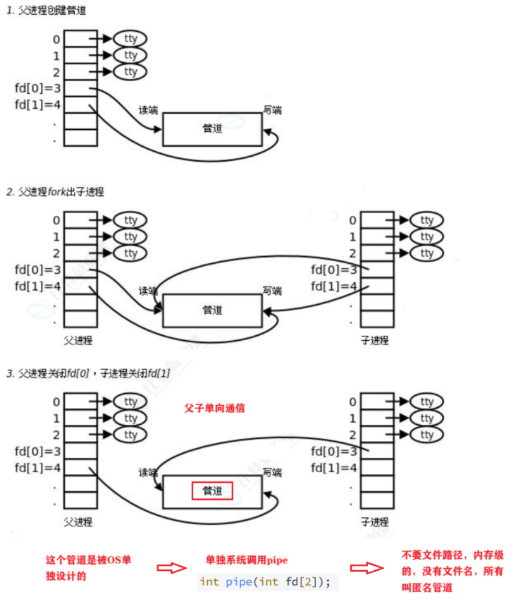 fd :⽂件描述符数组 , 其中 fd[ 0 ] 表⽰读端 , fd[ 1 ] 表⽰写端