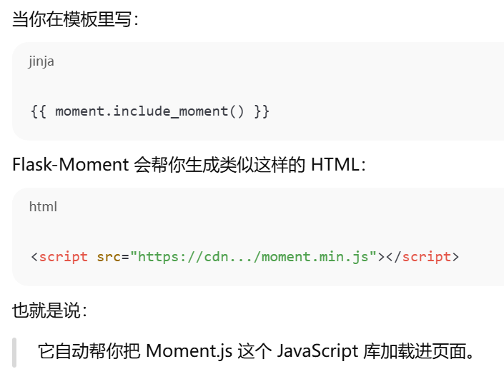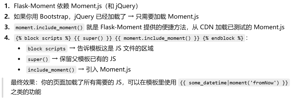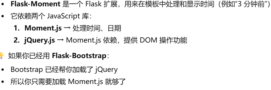 - [Flask-Moment (生成模板代码的flask扩展)和 Moment.js 的关系](#Flask-Moment (生成模板代码的flask扩展)和 Moment.js 的关系)