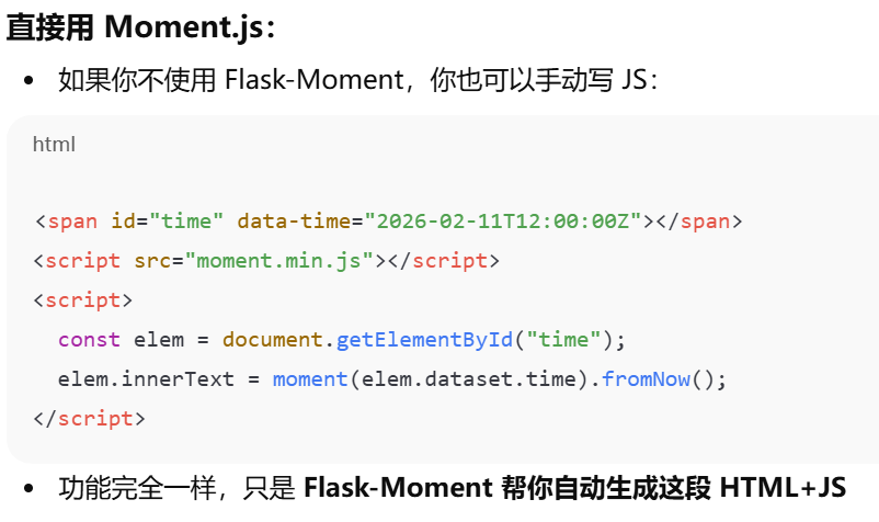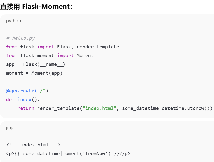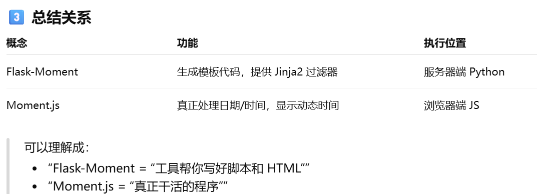 Flask-Moment (生成模板代码的flask扩展)和 Moment.js 的关系