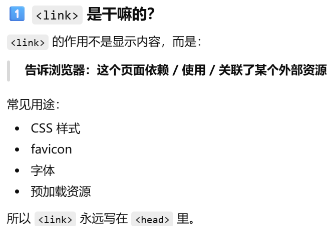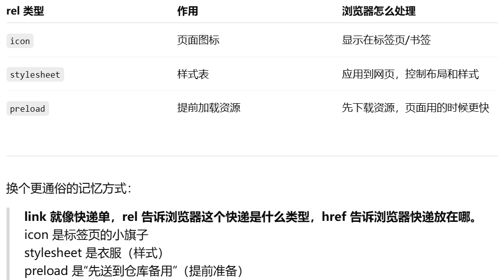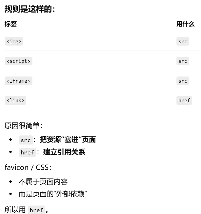 - [为什么不是 src?src:把资源"塞进"页面,href:建立引用关系](#为什么不是 src?src:把资源“塞进”页面,href:建立引用关系)
