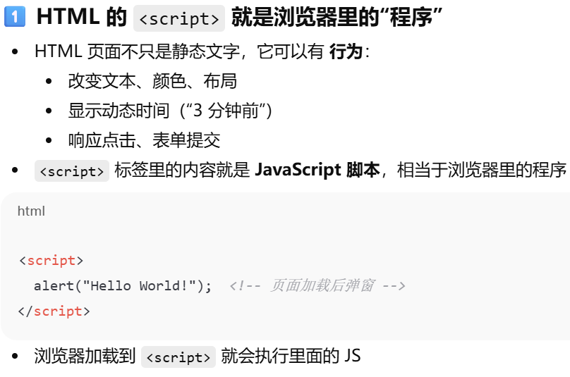 - [HTML 的 <script> 就是浏览器里的"程序"](#HTML 的 <script> 就是浏览器里的“程序”)