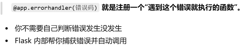 - [@app.errorhandler(错误码) 就是注册一个"遇到这个错误就执行的函数"](#@app.errorhandler(错误码) 就是注册一个“遇到这个错误就执行的函数”)