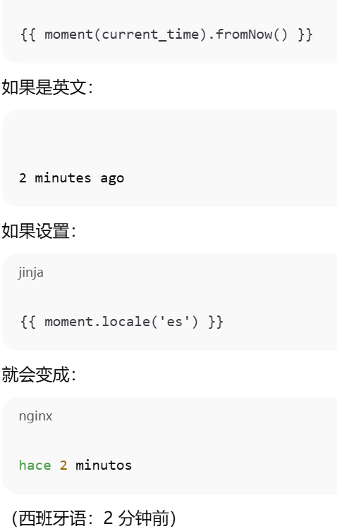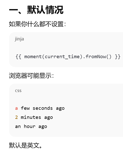 - [moment(xx).fromNow() 计算 xx 相对于"现在" 是多久。显示相对时间](#moment(xx).fromNow() 计算 xx 相对于“现在” 是多久。显示相对时间)