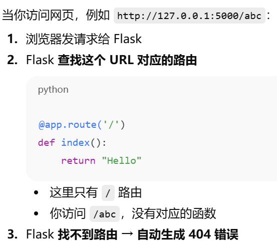 Flask 找不到路由 → 自动生成 404 错误