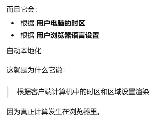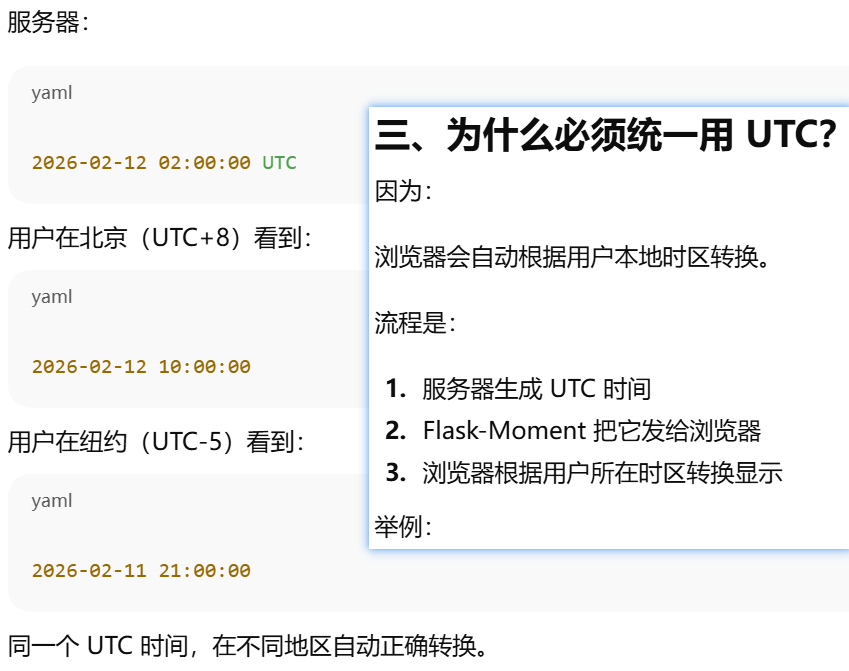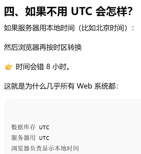 - [数据库存 UTC。服务器用 UTC。浏览器负责显示本地时间](#数据库存 UTC。服务器用 UTC。浏览器负责显示本地时间)