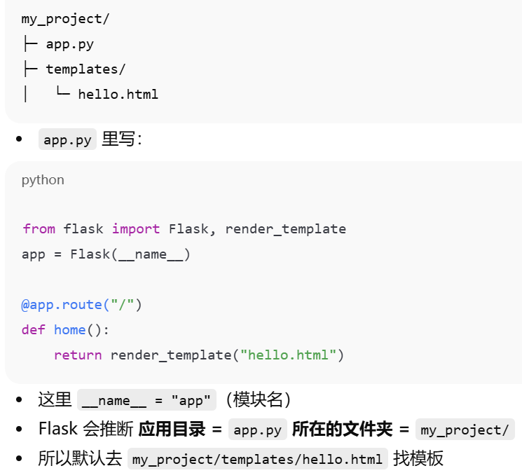 - [默认情况下,Flask在应用目录中的templates子目录里寻找模板。应用目录是哪个?创建 Flask 对象的那个 Python 文件所在目录](#默认情况下,Flask在应用目录中的templates子目录里寻找模板。应用目录是哪个?创建 Flask 对象的那个 Python 文件所在目录)
