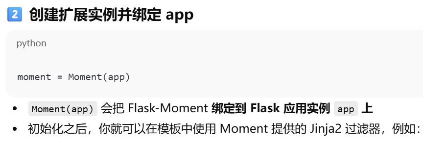 - [初始化Flask-Moment。创建实例并绑定 Flask 应用](#初始化Flask-Moment。创建实例并绑定 Flask 应用)