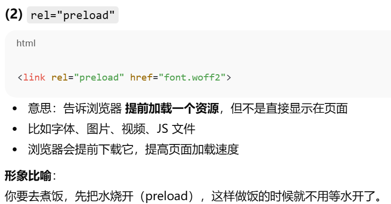 - rel="preload"提前加载一个资源