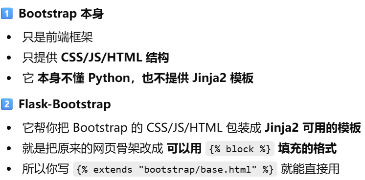 - [Flask-Bootstrap 的作用:把bootstrp包装成jinja2可用的模板,从而实现模板继承](#Flask-Bootstrap 的作用:把bootstrp包装成jinja2可用的模板,从而实现模板继承)