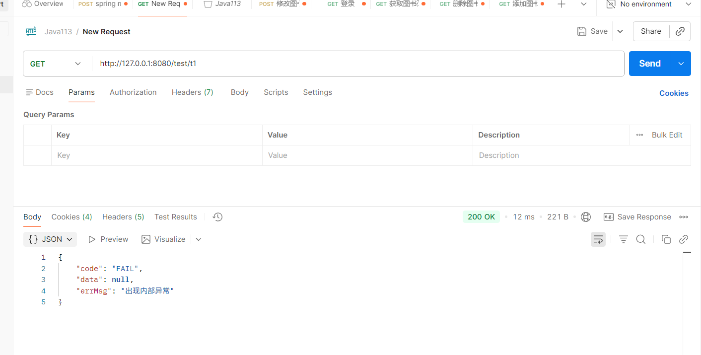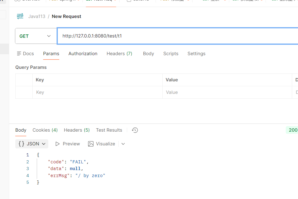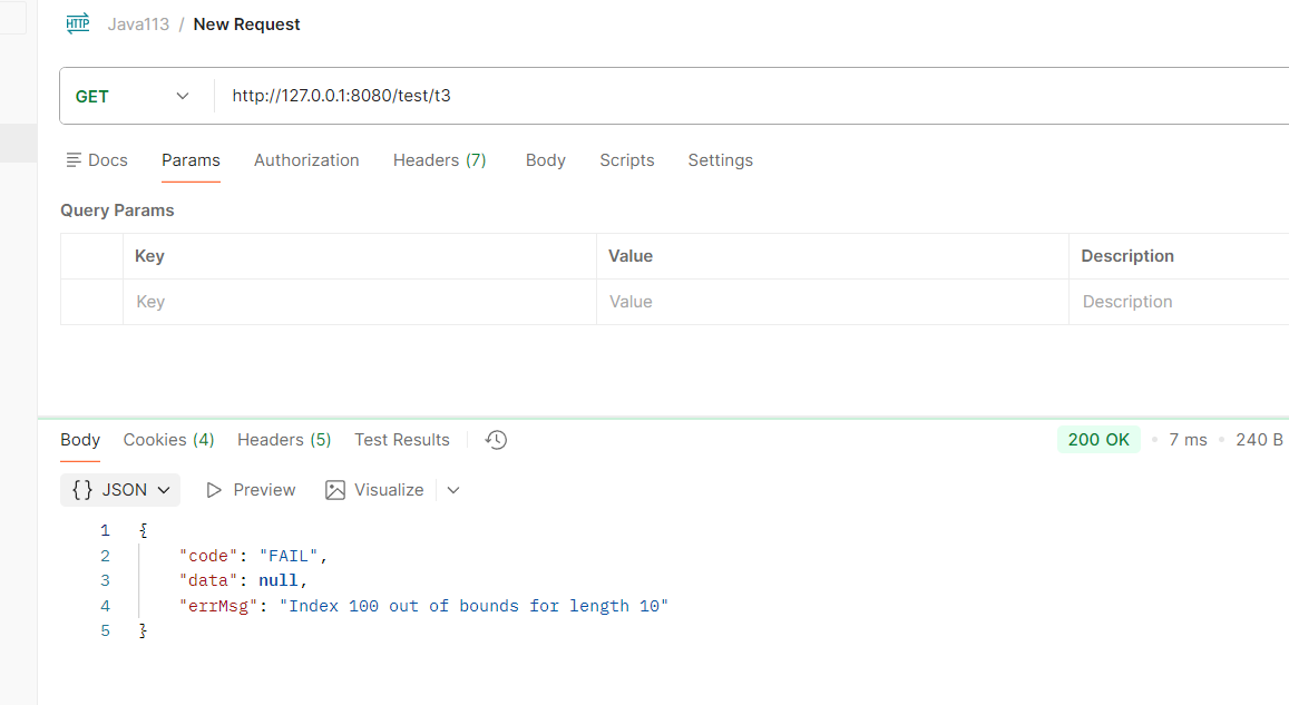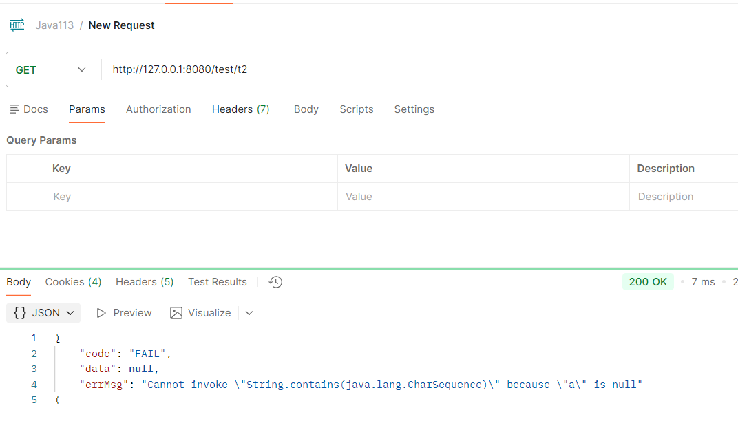此时还没启动统一处理,这时访问接口返回结果是这样的: