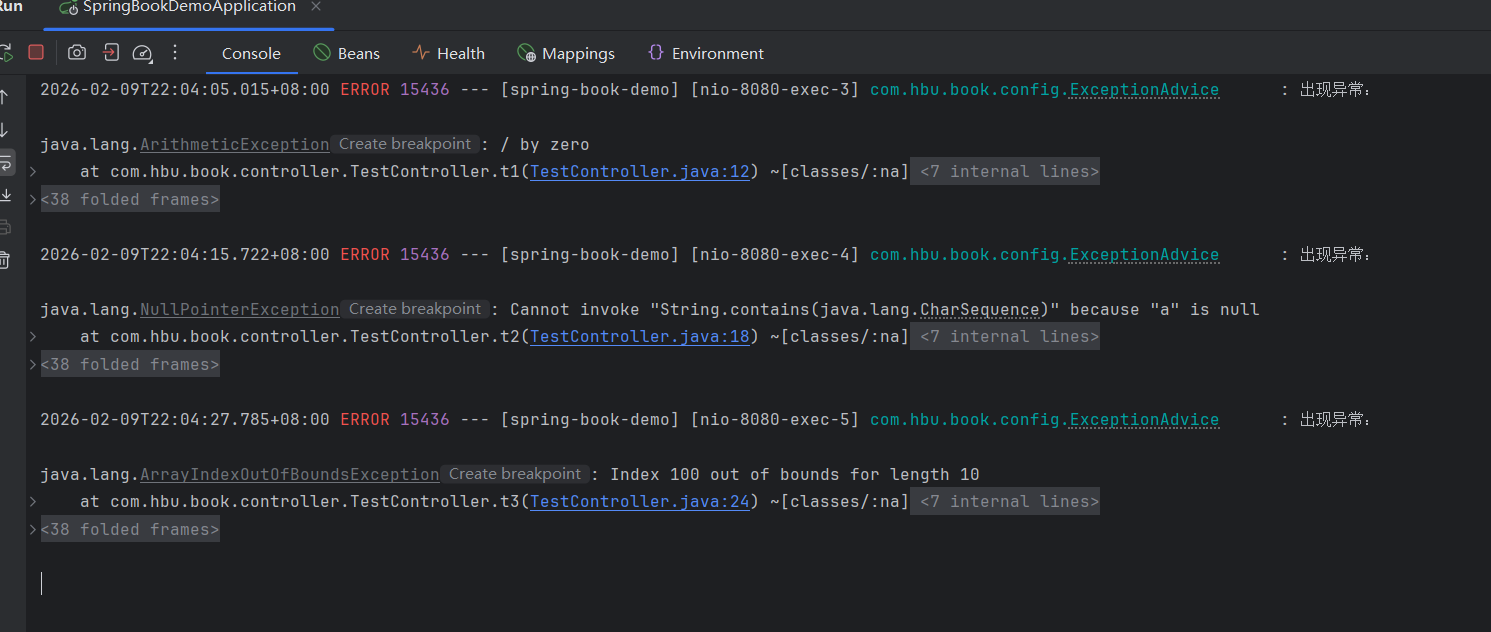 对于不同的异常,我们其实可以设置不同的方法: