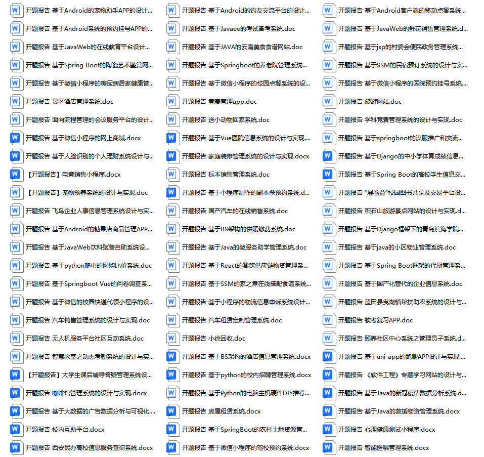 以上是某同学的毕业设计答辩的过程,如果你现在还没有参加答辩,还是开题阶段,已经选好了题目不知道怎么写开题报告,可以下面找找有没有自己符合自己题目的开题报告内容,列表中的开题报告都是往届真实的开题报告,可发送使用或参考。文末或底部来联xi可免费获取