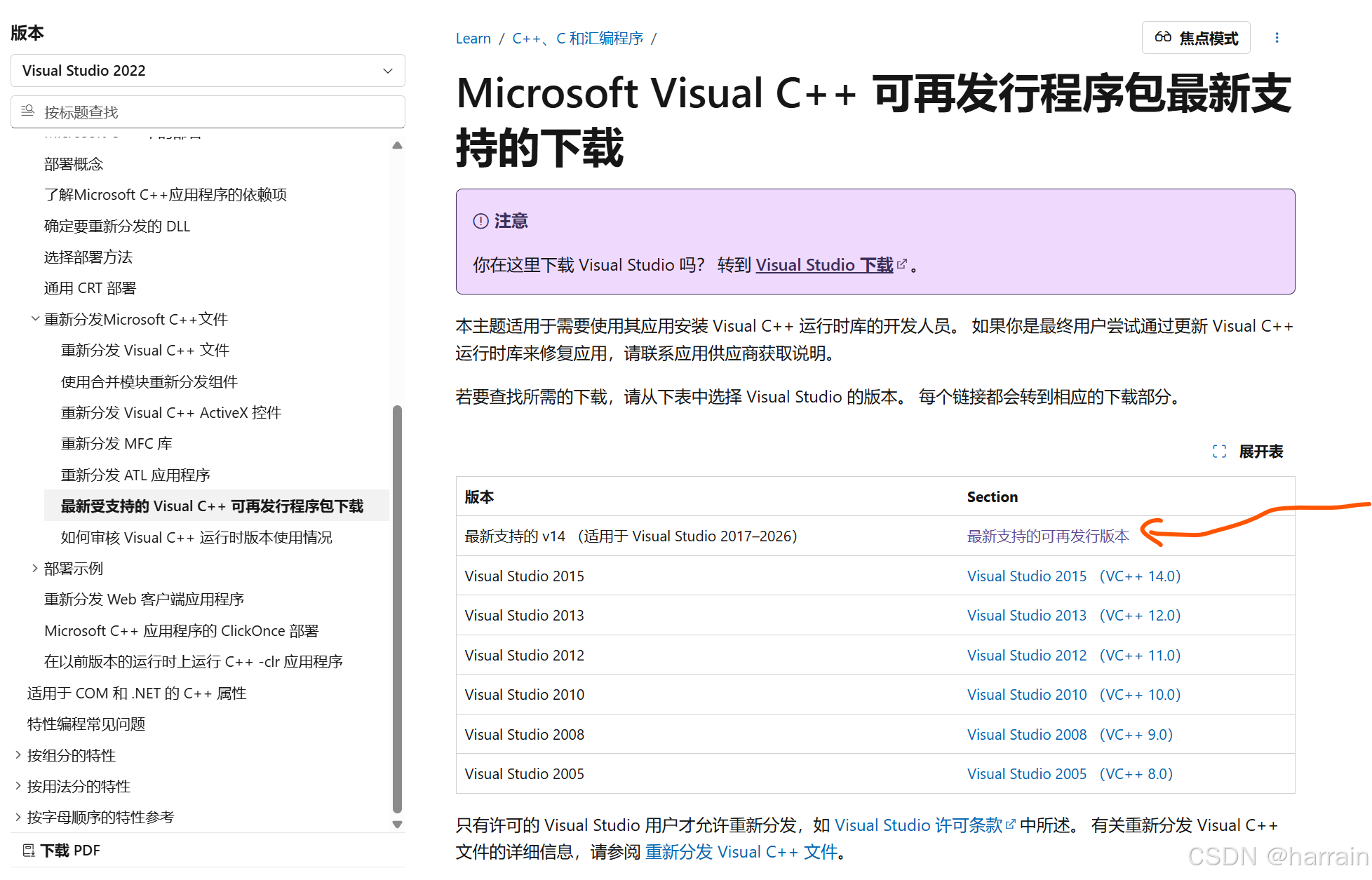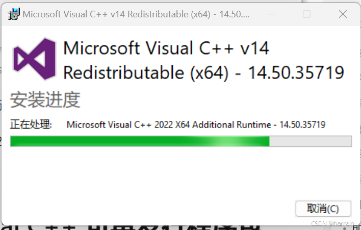 下载Visual C++ :https://learn.microsoft.com/zh-cn/cpp/windows/latest-supported-vc-redist?view=msvc-170