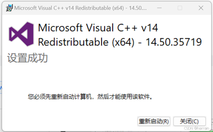 提示:This application requires Visual Studio 2019 x64Redistributable, Please install the Redistributable then runthis installer again。出现这个错误是因为我们电脑缺少Microsoft Visual C++ 这个程序.