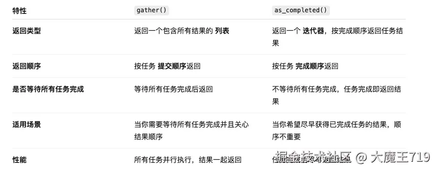 代码解释:我们通过create_task创建了多个要执行的协程任务(task)然后在分别获取每个协程的结果