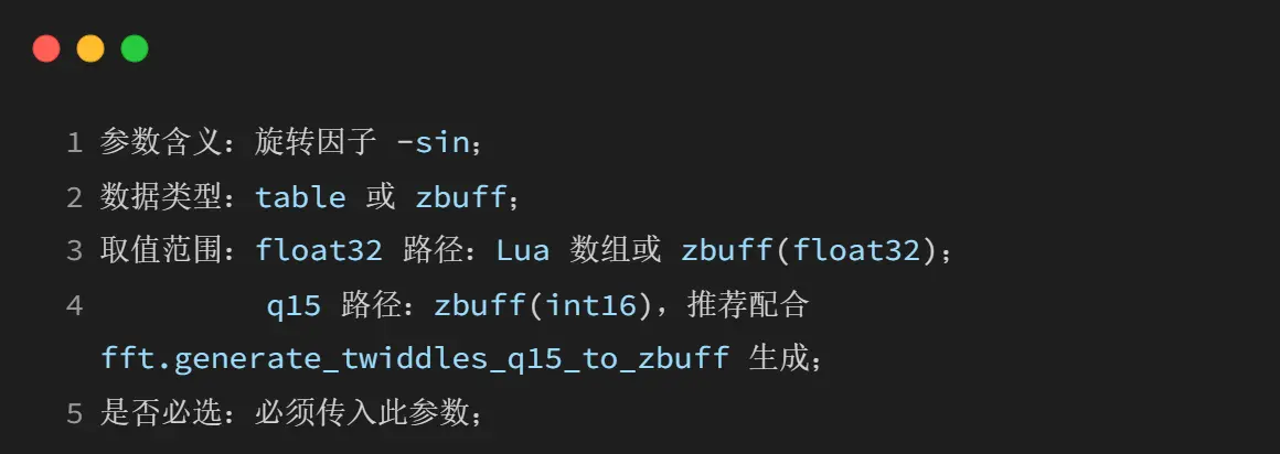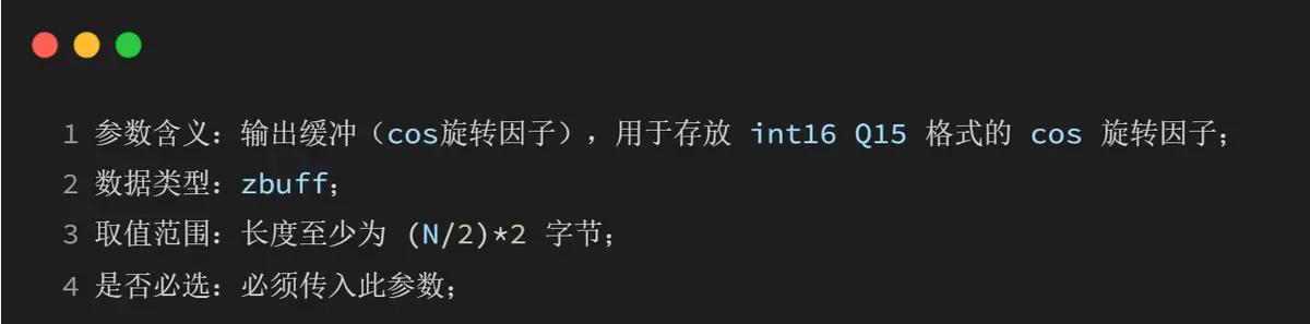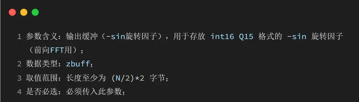 生成 q15 定点旋转因子到 zbuff(零浮点)。