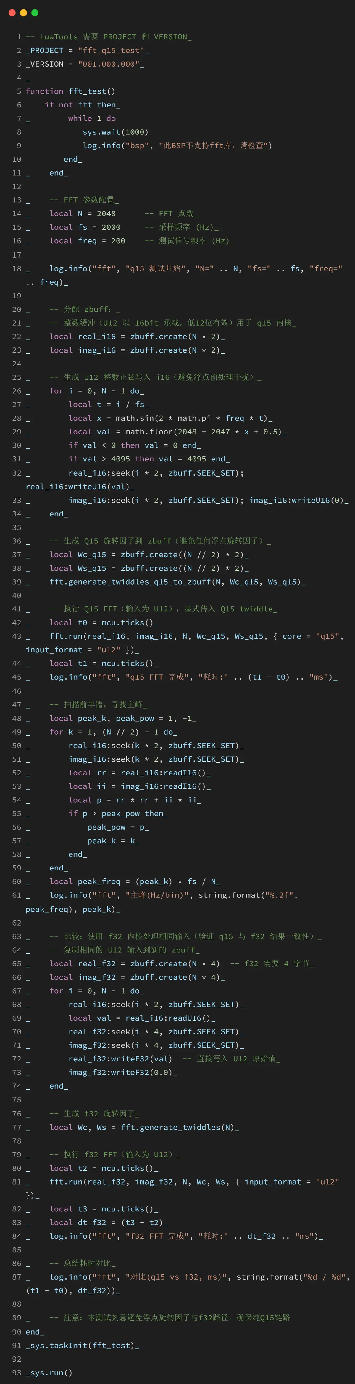 支持 LuatOS 开发的所有模组都支持 fft 核心库。