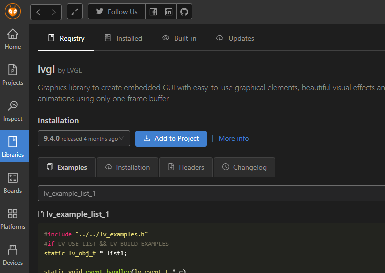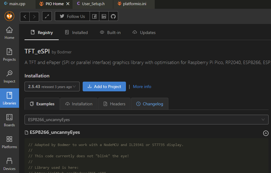这里使用最为广泛使用的TFT_eSPI库进行配置,直接在PIO HOME搜索装上完事