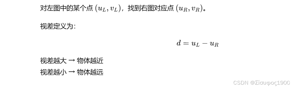 ② 匹配对应点 → 计算"视差" d
