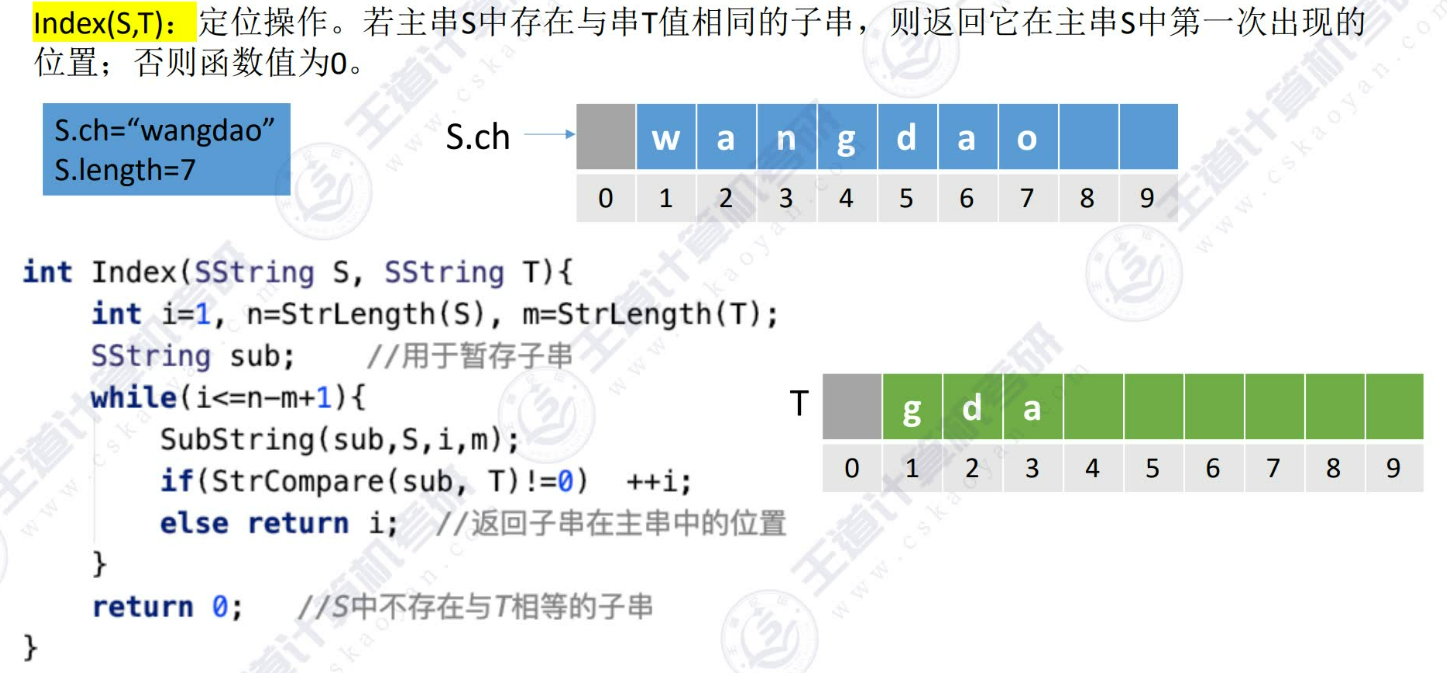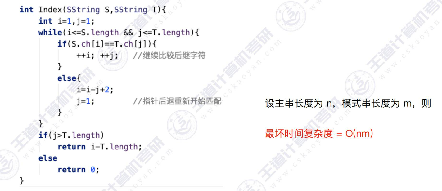 不使⽤字符串的基本操作,直接通过数组下标实现朴素模式匹配算法: