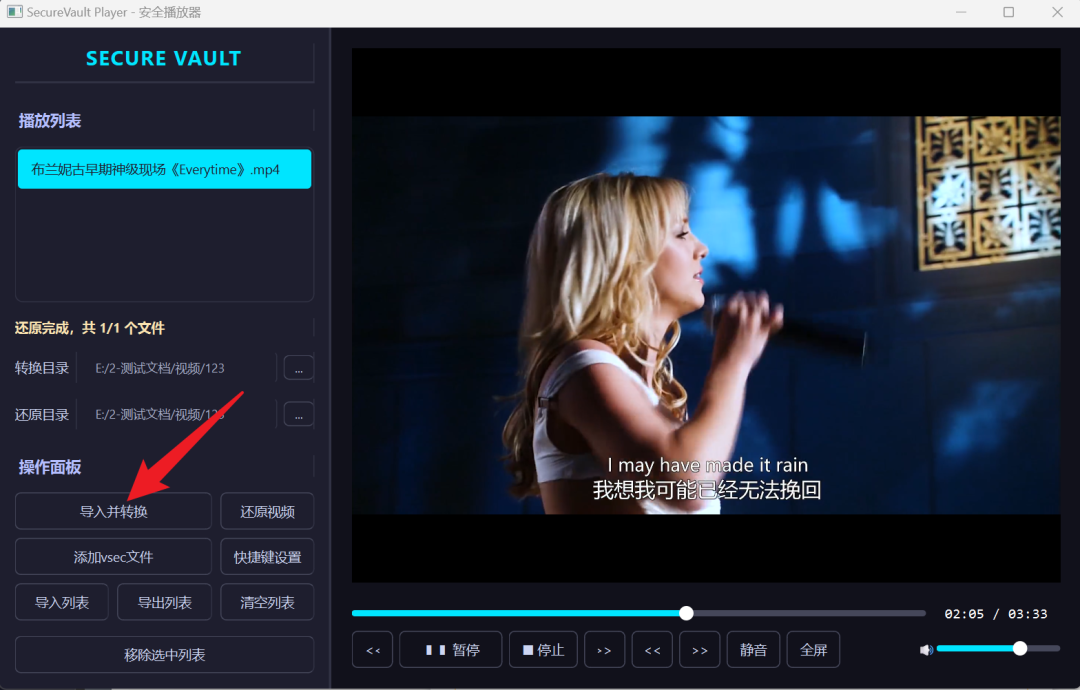 进软件后点【导入并转换】,就能把视频转成.vsec格式,转完原来的视频删了也没事,安全得很。