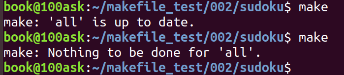 不难看到这样输出的就是Nothing to be done没有东西可以执行,那么就是表示执行成功,这里因为要强制将all输出出来,这里就把all设置为了伪目标。