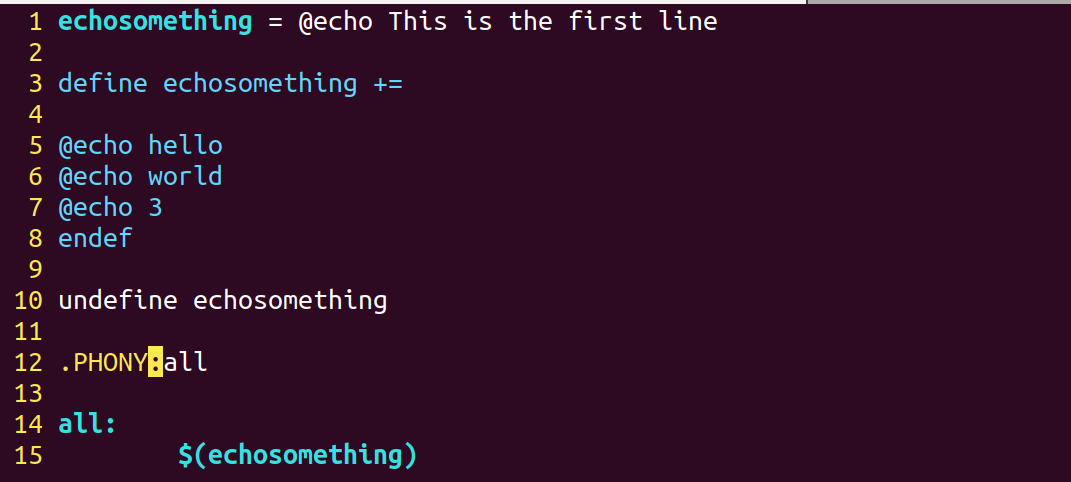 然后可以看到我们可以用define和endef来定义一个多行变量