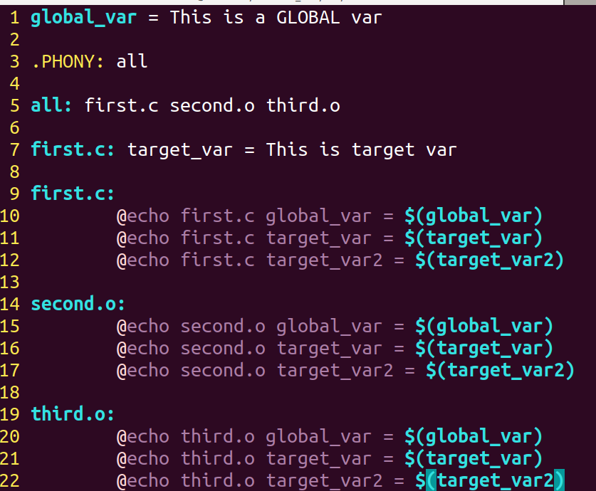 perlVAR1 = main.cpp .SECONDEXPANSION: all: $$(VAR1) @echo $^ VAR1 = hello.cpp